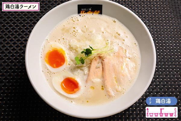 年間1000杯を食すラーメン通の店主が作る"無化調の鶏白湯スープ"。鶏ガラと野菜を長時間煮込みミキサーで泡立てとてもまろやかな仕上がりに♡化学調味料を使用していないのに、物足りなさは一切なく後味さっぱりなのがツカサの魅力!女子博用にバージョンアップしたモチモチ度MAXの中太麺にも注目して!