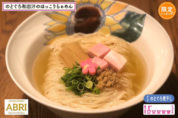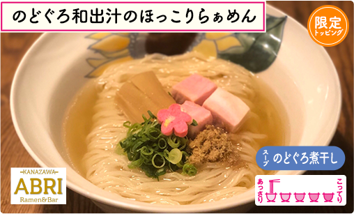 金沢に本店を構え、東京・恵比寿に2号店を出すのどぐろ煮干しらーめん店!独学で辿り着いた、のどぐろ100%の繊細スープは別名 ""飲むのどぐろスープ""。京都の「麺屋棣鄂」オリジナルのスリムウィング麺を使用し独特の啜り心地を実現。能登豚ももチャーシュー・メンマ・飾り麩など、こだわりのトッピングを女性店主ならでの目線で華やかに盛り付けました!女子博限定の青唐鶏ミンチを加えれば一気にピリ辛ラーメンへと早変わり♪3種の高級チーズと気仙沼産無添加オイスターソースを合わせたオイスターフロマージュもオススメのトッピング♥