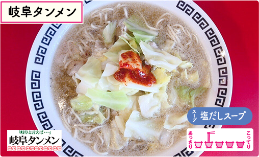 岐阜県、愛知県を中心に店舗展開し、幅広い層からの人気を誇る『岐阜タンメン』。関東地方の一般的なタンメンと違い、 豚肉、白菜、キャベツ、にんにくから旨みを抽出した上で塩スープと合わせ、あっさりながらも一度食べたら抜け出せない中毒性も♪各素材の甘味が引き立つ味変アイテム「辛味あん」にも要注目◎人生最後の食事にはこの一杯を選びたい!と、思う私も勿論、岐阜タンメンラバーなのである!