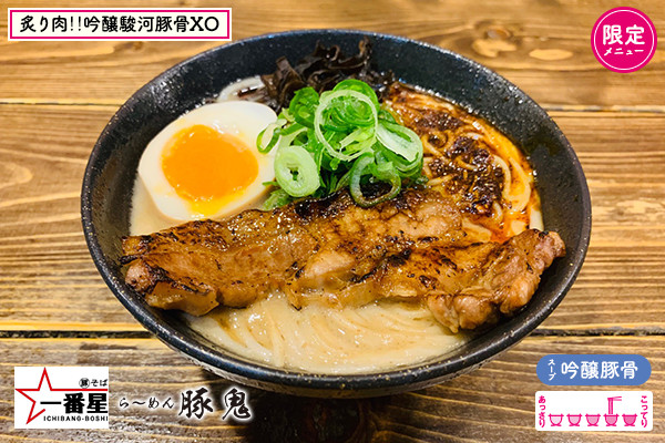 某グルメランキングの静岡県中部地区・豚骨部門1位に選ばれた実力店舗と浜松の濃厚豚骨の名店がこのイベントで初のスペシャルタッグを組みました!イベント用に選んだのは、「吟醸豚骨」と「XO醬」。匠の技で炊き出した豚骨スープに海老や魚介類の旨味を詰め込んだXO醬の織りなすハーモニーは食べた人にしか分かりません♬その場で炙られるどデカイ「炙りバラ焼豚」も食欲をそそります。地元静岡の為に仕上げた最高の一杯を是非ご賞味あれ!