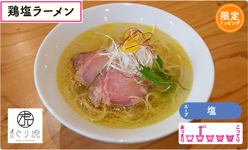 名店「麺処ほん田」「麺屋翔」で修行を積んだことでマニアの間では有名なラーメン店。 ハッと息を呑むほどの塩スープは、軍鶏、若丸鶏、親ガラ、もみじからゆっくりと出汁を引く驚くほどクリアな仕上がり。北海道産100%小麦で作られた千葉県「中華蕎麦とみ田」の特注麺も噛めば噛むほどに味わい深く、ブランデーと溜まり醤油で仕上げた珠玉の味玉や、5時間かけて真空低温調理したチャーシューも文句なしの絶品です。芳醇な香りをプラスしてくれる黒トリュフパウダーや牡蠣のオイル漬けは女子博限定で登場。あなたもこの美味しさにトキメいて♡